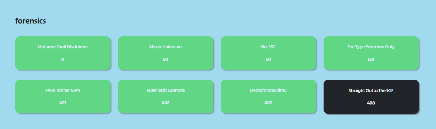 In this competition, I think the forensics challenges were not too difficult overall (even the newbie-level could be accessed by around 7 out of 8 tasks). However, some tasks were overly reliant on guessing, which made it a bit frustrating for forensic enthusiasts.