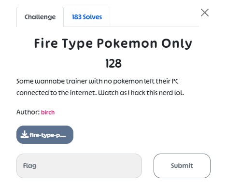 UMDCTF 2023 starts at 5:00 AM on April 29, 2023, and ends at 5:00 AM on May 1, 2023 (which is not at all suitable for someone like me who loves to sleep in). The challenges in this competition revolve around Pokemon.